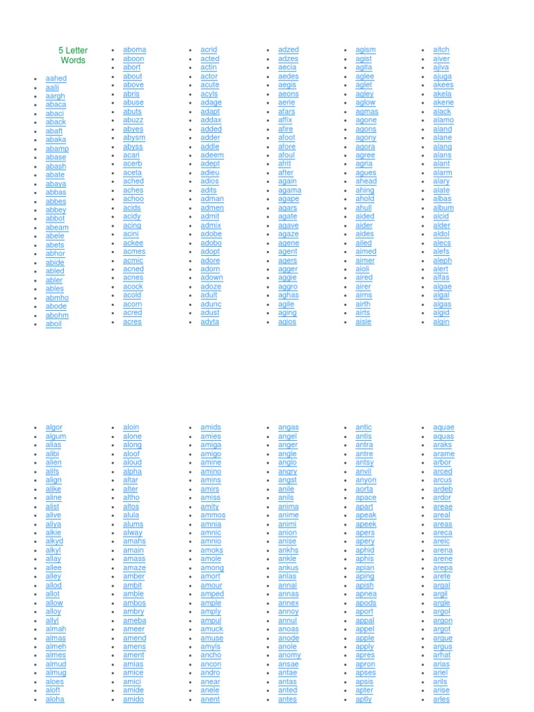 5 Letter Words Pdf Nature